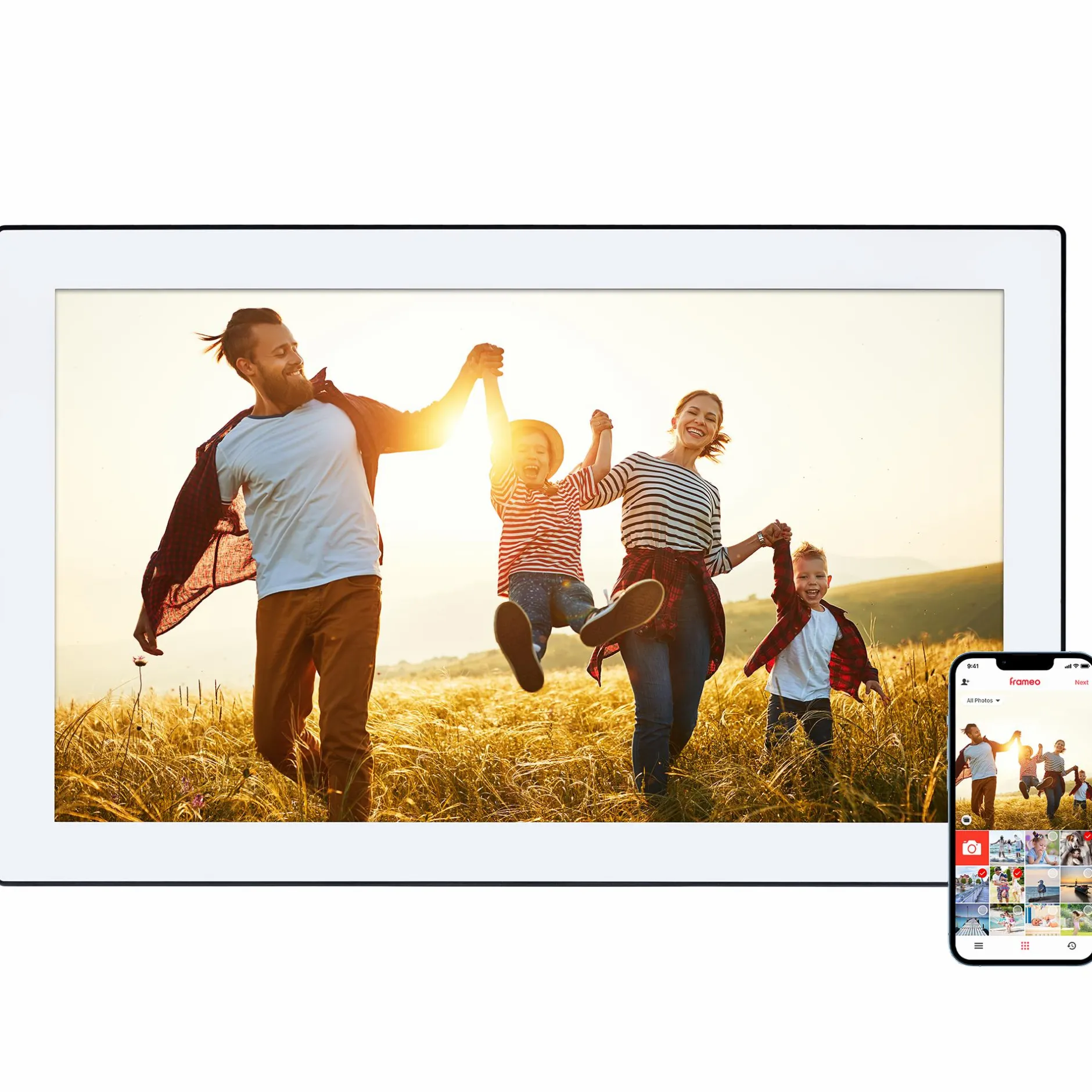🔸 Flexible Übertragung: Von Frameo-App, Speicherkarte, USB-Speicher oder Computer