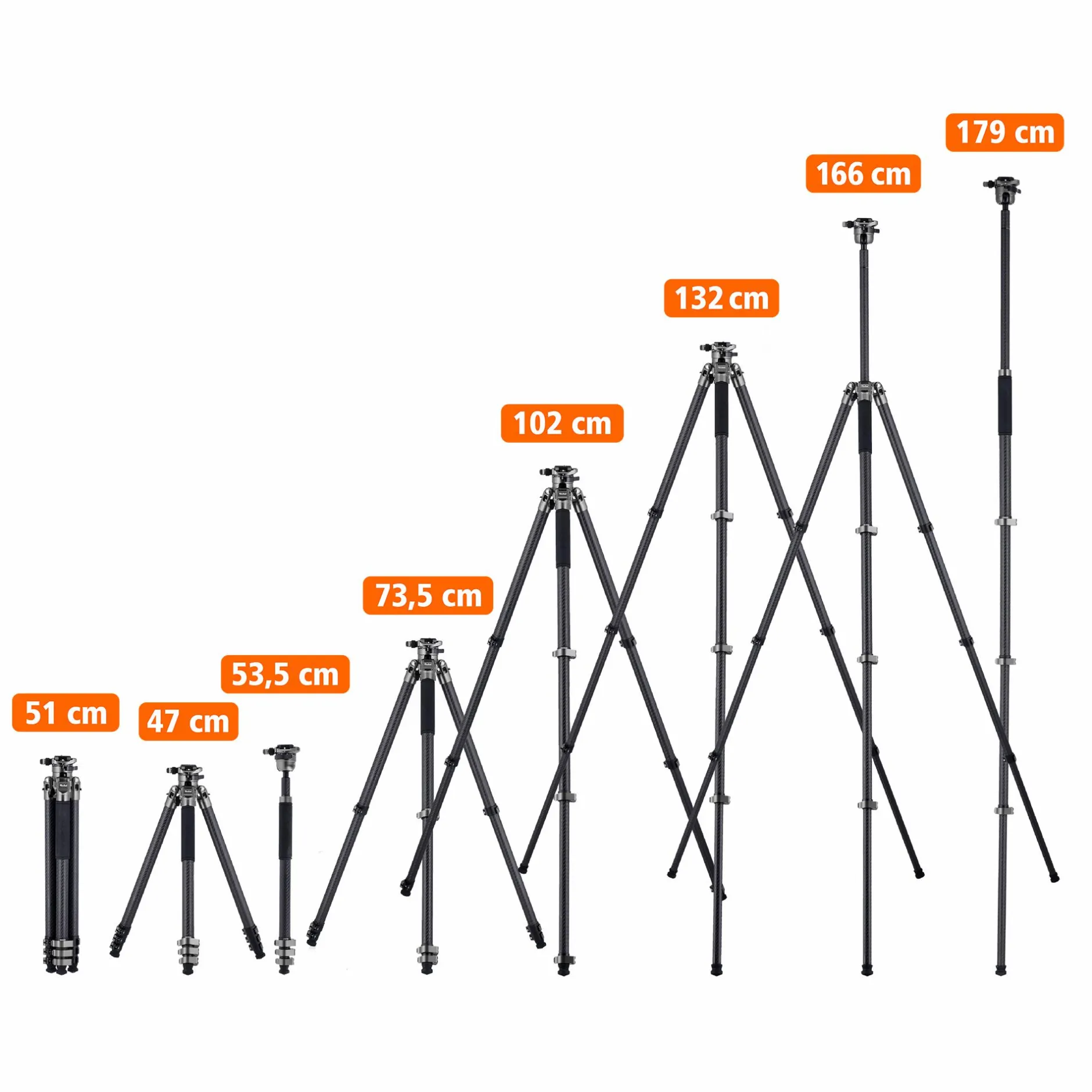 🔸 Kompaktes Packmaß: Mit nur 51 cm lässt sich das Stativ mühelos transportieren und verstauen