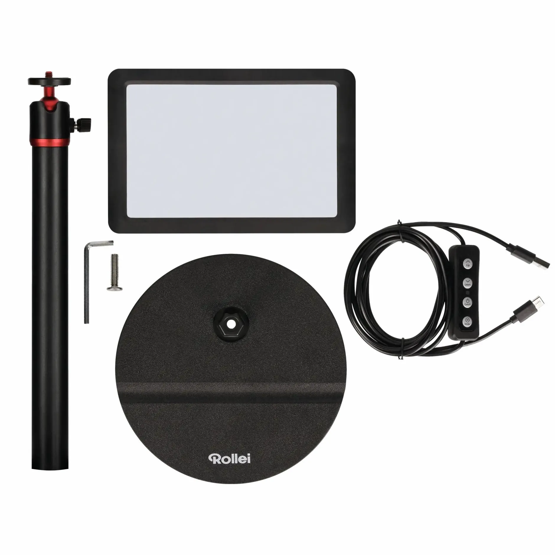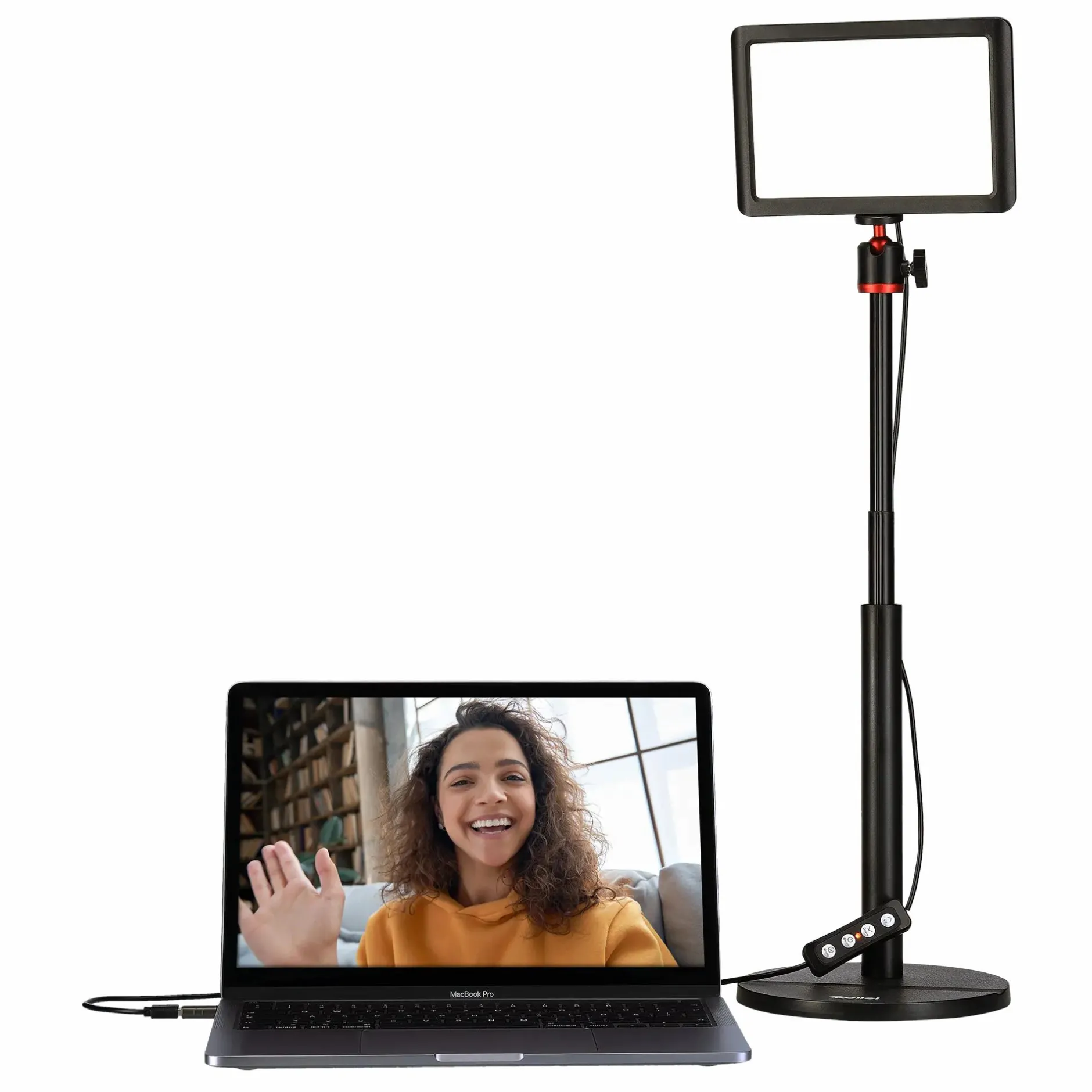Die insgesamt drei Farbtemperaturen (3.200, 4.500 und 5.500 Kelvin) und ihre acht Helligkeitsstufen lassen sich einfach und bequem an der Fernbedienung des Kabels am LUMIS Key Light einstellen. Und damit das LED-Dauerlicht zum Videostreaming keine oft raren Steckdosen am Schreibtisch nutzt, haben wir es mit einem USB-A-Stecker ausgestattet. Einfach an einem USB-Port oder einem USB-Netzteil anschließen und es kann losgehen.