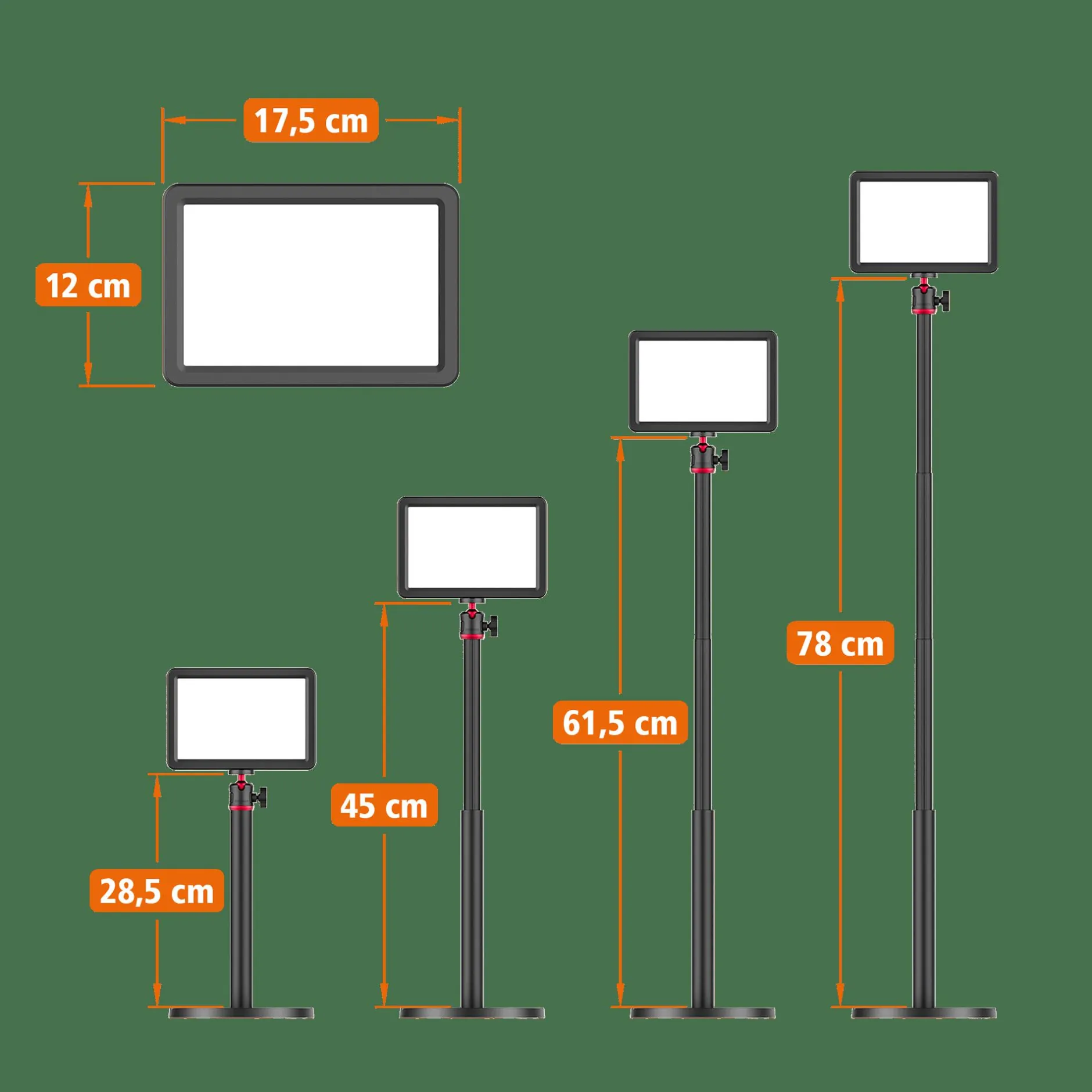 Durch seine kompakte Größe können Sie es an unterschiedlichen Stellen aufstellen und so für eine ideale Beleuchtung sorgen. Dabei sorgt der robuste Standfuß dafür, dass das Streaming-Licht stets an Ort und Stelle bleibt. Über die Teleskopfunktion lässt sich das LED-Dauerlicht auf eine Höhe zwischen 28,5 Zentimetern und 78 Zentimetern ausziehen und so individuell anpassen. Zudem macht der smarte Kugelkopf am LUMIS Key Light eine ideale Ausrichtung des Lichts möglich.