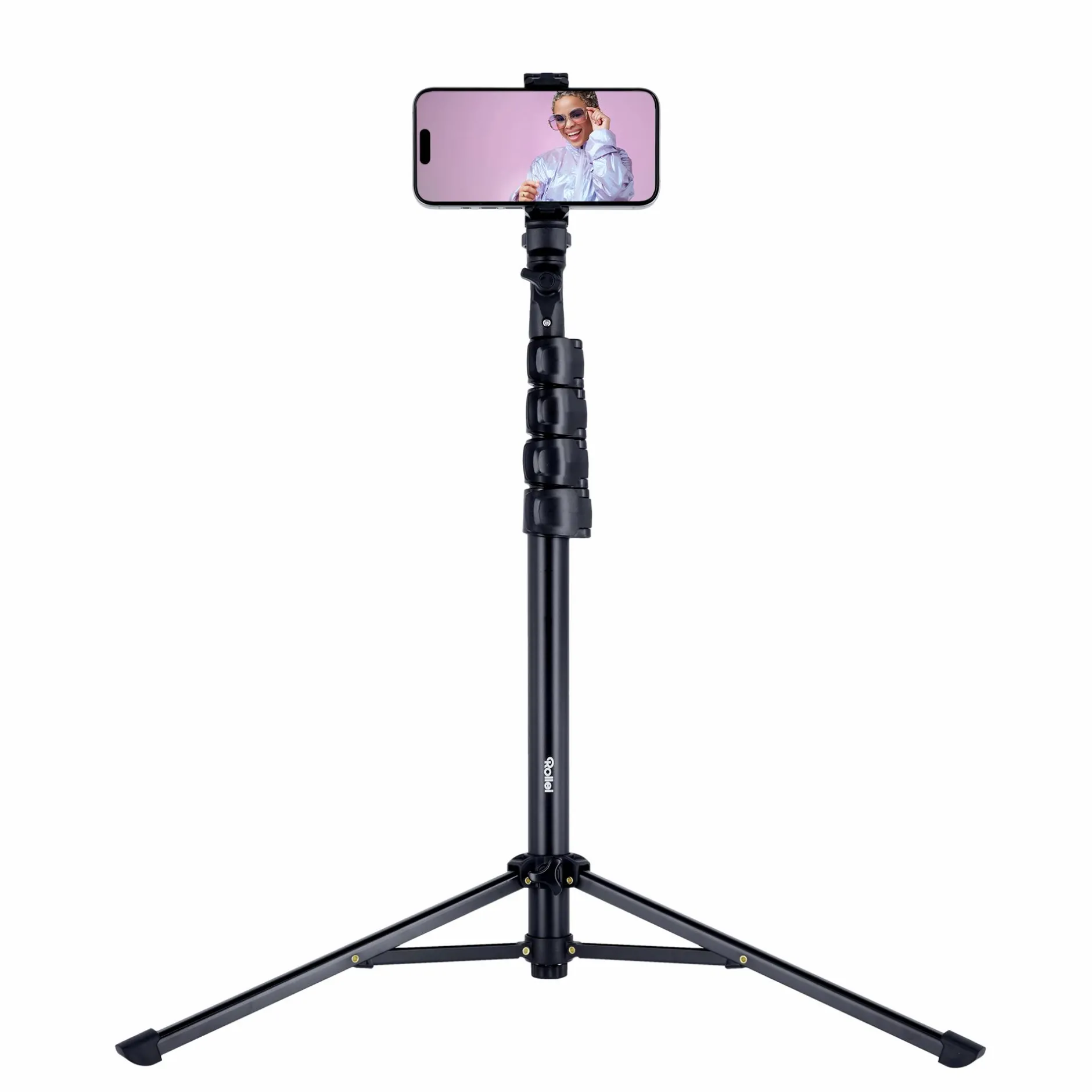 Stell dir vor, du filmst oder fotografierst zwischen 46 und 155,5 cm Höhe – immer genau passend für dein Motiv! Die einzelnen Teile der Mittelsäule lassen sich separat fixieren. Dieses Stativ ist perfekt zum Filmen von dir selbst, zum Beispiel für TikTok-Videos oder für coole Gruppenfotos.